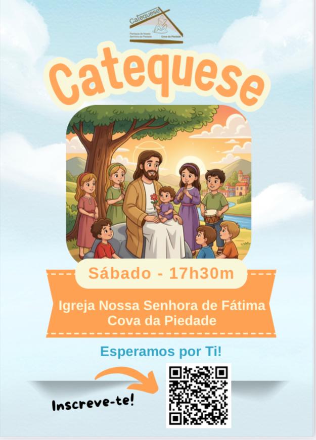 A catequese paroquial da infância e adolescência terá inicio no próximo sábado, dia 11 de outubro de 2025, às 17h30, na igreja de Nossa Senhora de Fátima.