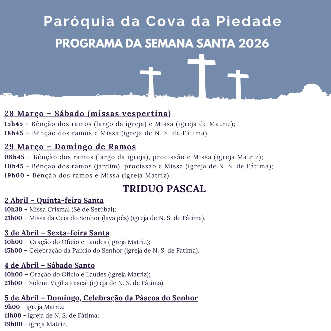 18h45 Bênção dos ramos e Missa (igreja de N. S. de Fátima).
